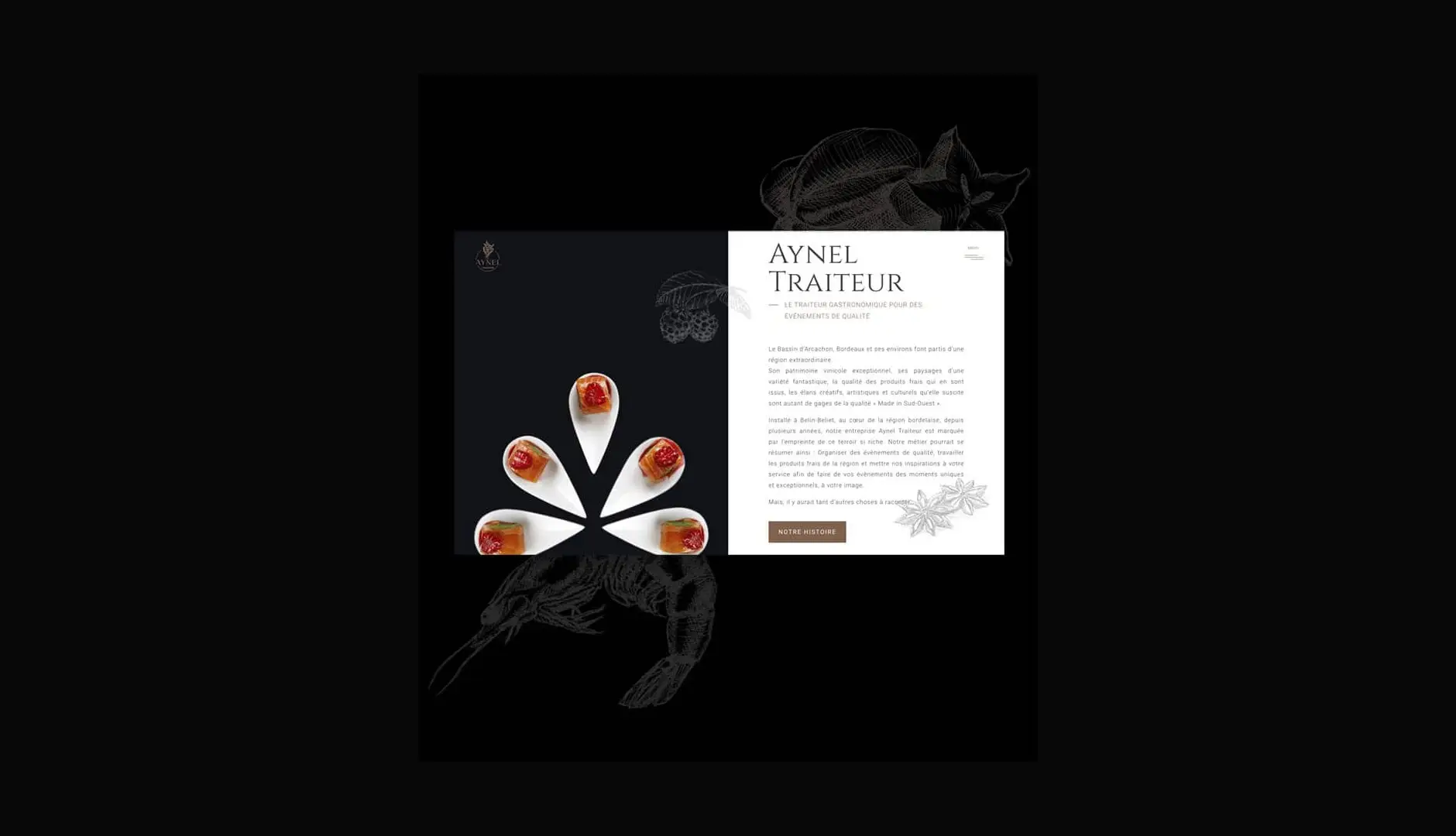 L’objectif était clair : offrir aux visiteurs une expérience utilisateur optimale tout en mettant en valeur leurs services. Ainsi, le site vitrine se devait d’être à la fois esthétique et fonctionnel, permettant aux internautes de naviguer facilement à travers nos différentes pages et de découvrir tout ce que Aynel Traiteur a à offrir.